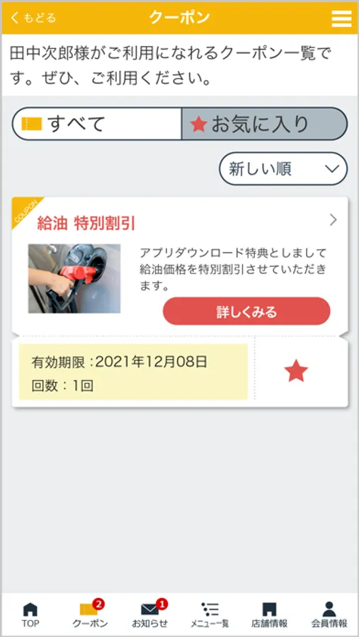 登録した店舗が発行するクーポンをご利用頂けます。