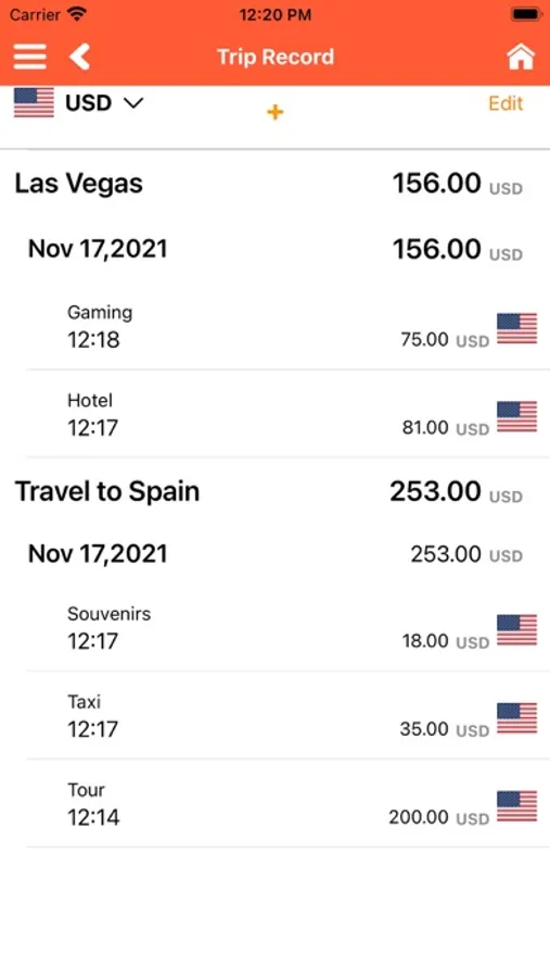 Save your expenses with one click. A clear list shows you the running costs of your trip. Clearly presented in detailed daily expenses