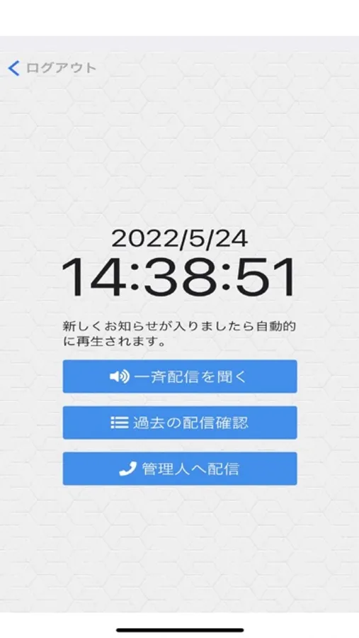 管理者から集合住宅入居者へ一斉に音声、画像を配信するアプリで、スマートフォンやタブレットで配信状況も見ることができます。個別配信機能で双方向通信も可能です。