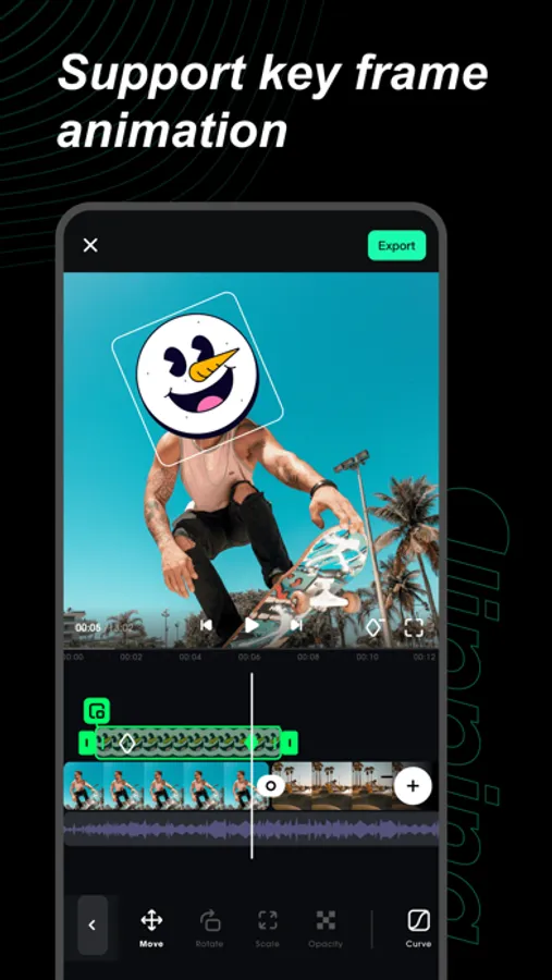 Support keyframe animation, blend mode, filter, special effect, color adjustment, stroke, mask, layer arrangement, replace, copy, rotate, delete, crop, cutout, video-reverse