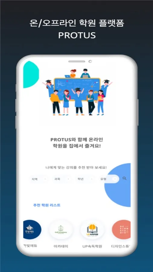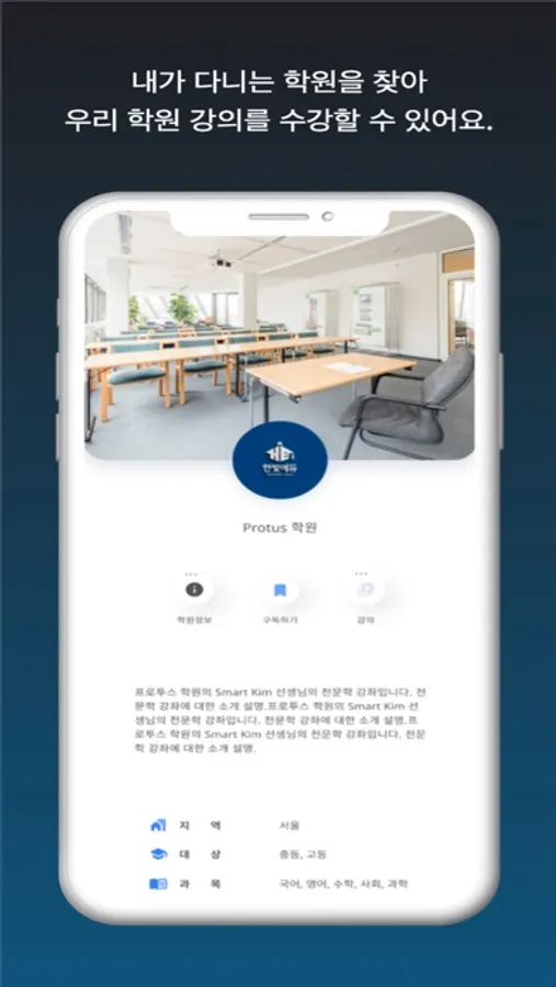 1. 내가 다니는 학원을 찾아 우리 학원 강의를 수강할 수 있어요.