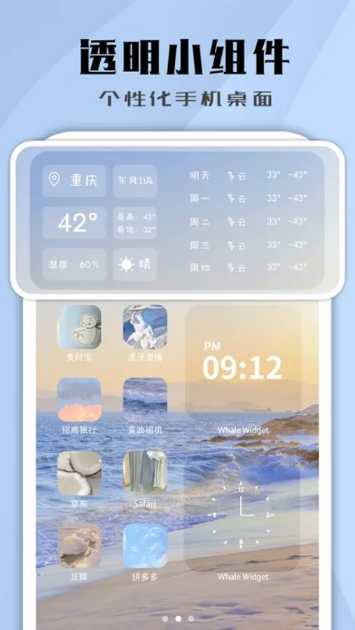 Welcome to the mobile desktop theme icon wallpaper beautification world of whale widget!