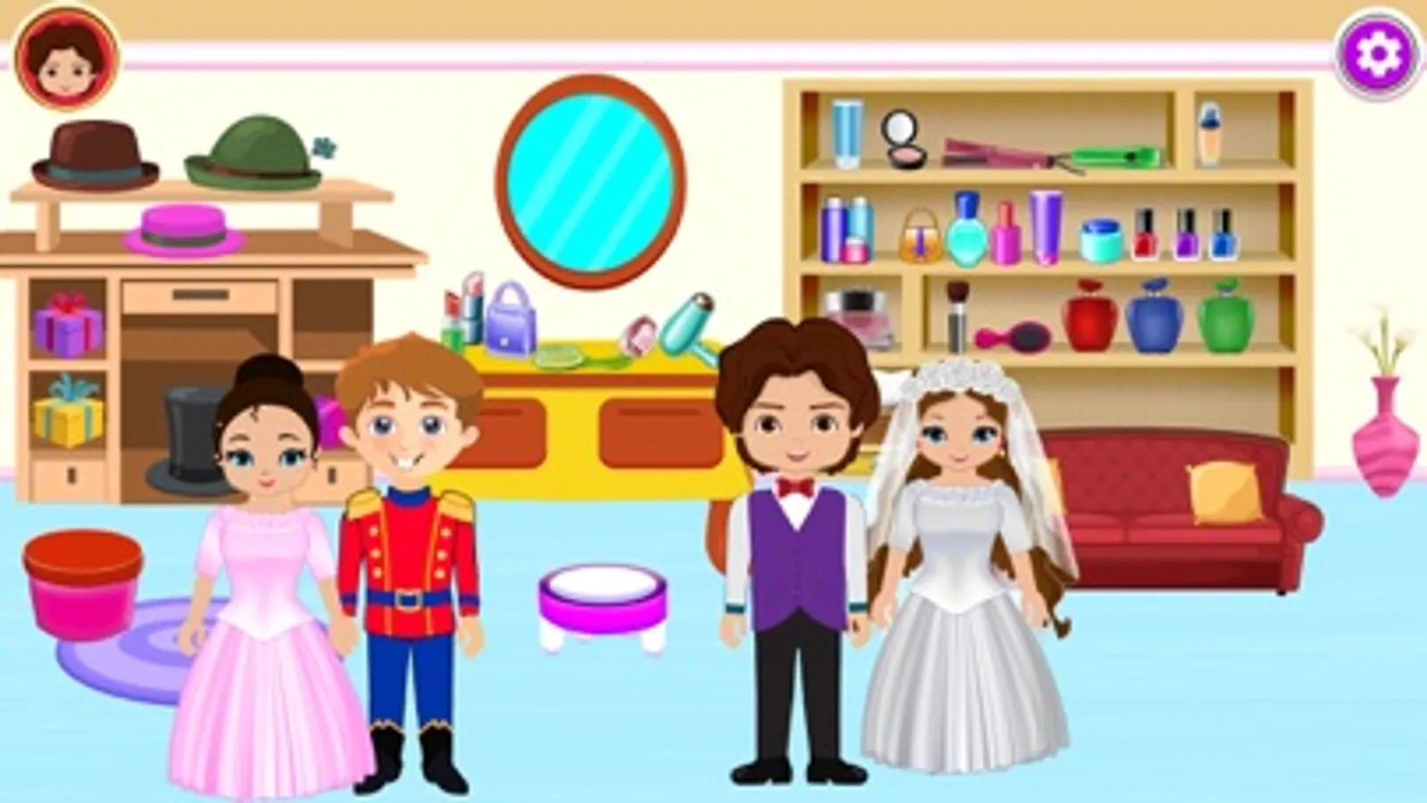 Be the best wedding planner in Town and unleash your crazy designer skills in this makeover game for girls! Our wedding day party game has everything for fashion stylist girls to create their fantasy and plan the perfect day with their friends in pretend town marriage games. There is no limit for party planners to create their autism stories. They will be able to create a dollhouse & then decorate it like a pro-home designer and spend hours of fun. Explore new characters and interact with each and everything in this pretend play salon game for girls.