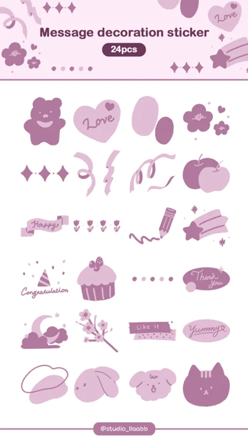 Adorable purple 24 Stickers with animal, flower, shooting star, dreaming moon with the cloud!