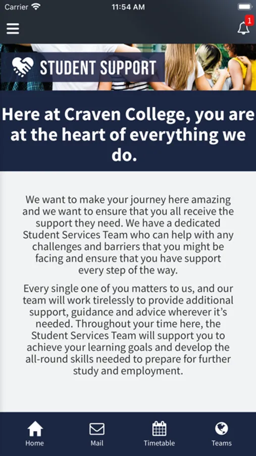 MyCraven is your essential guide to student life at Craven College. Get up-to-date campus alerts, emails, timetables and so much more to make student life that little bit easier.