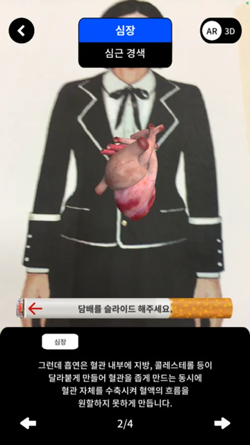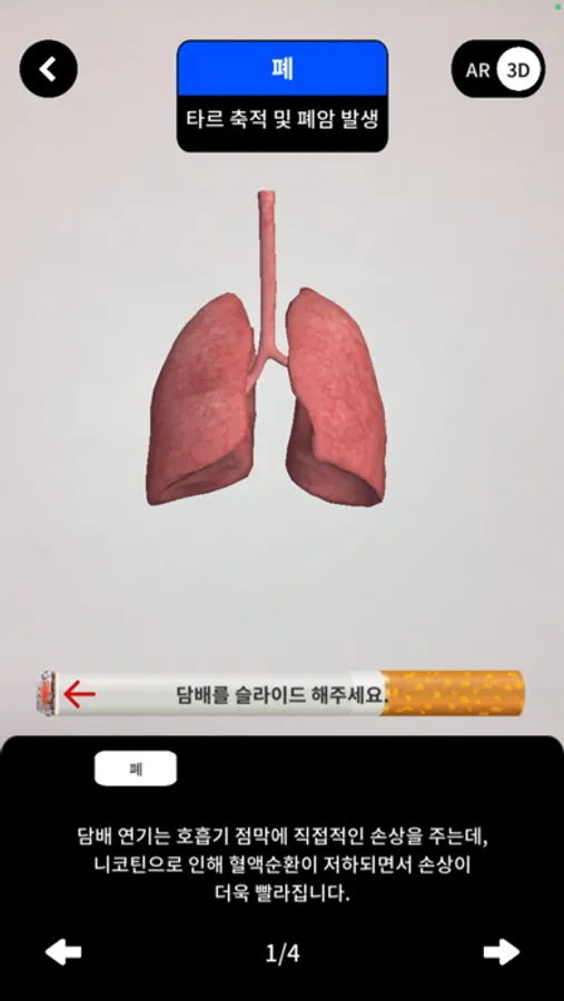 흡연 시, 일어나는 신체의 변화를 보다 사실적으로 확인할 수 있습니다.