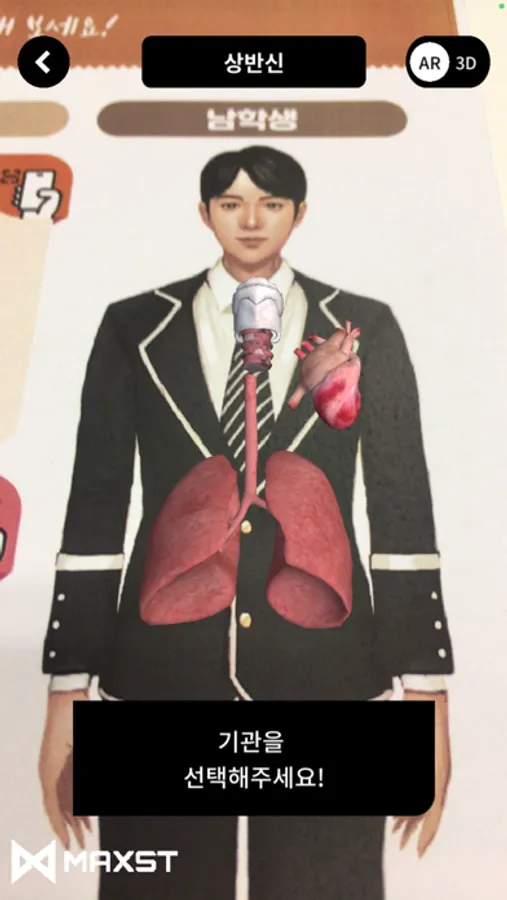 AR을 포스터에 비춰보세요, 얼굴 / 상반신 / 하반신의 변화를 확인할 수 있습니다.