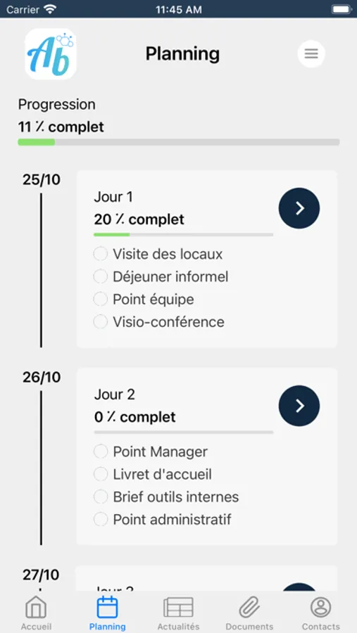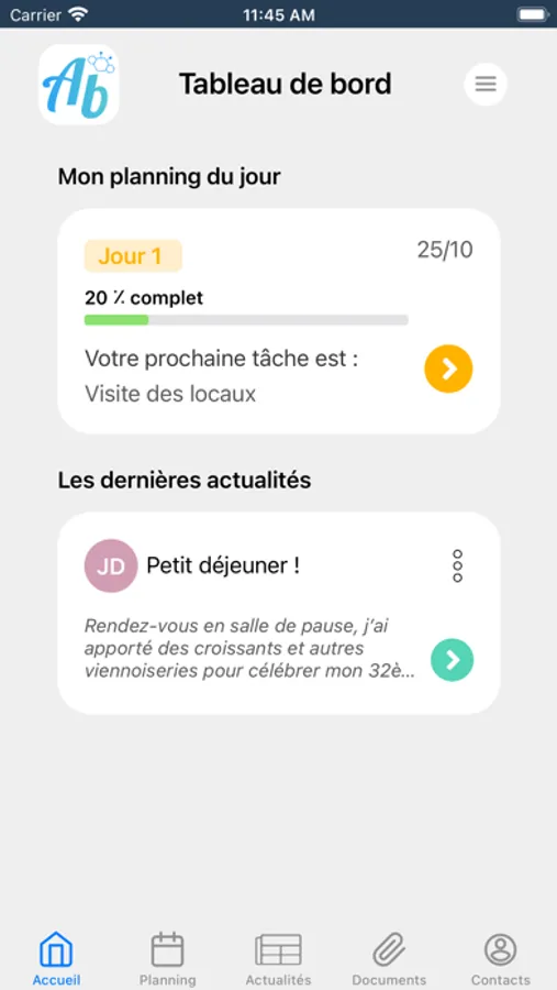 Au travers de l’appli Abeee, proposez une expérience engageante à vos collaborateurs. A chaque étape. Créez du lien dès l’embauche avec votre culture et vos équipes pour faciliter leur intégration. Proposez-leur un parcours personnalisé et humain pour les accompagner sereinement tout au long de leur onboarding. Fidélisez votre communauté grâce à un communication privilégiée.