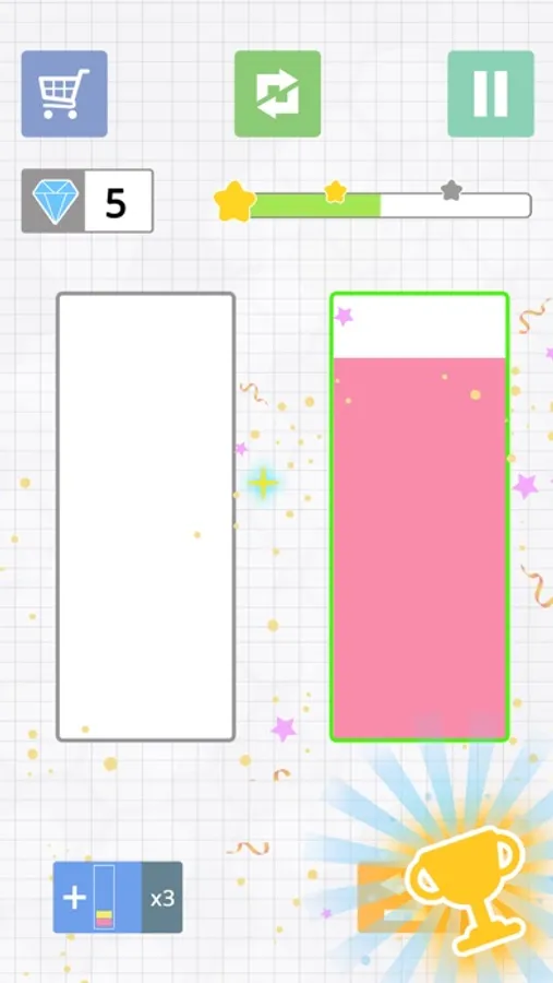 Tap any glass to collect the top colored water, and then tap any other glass to pour the liquid.