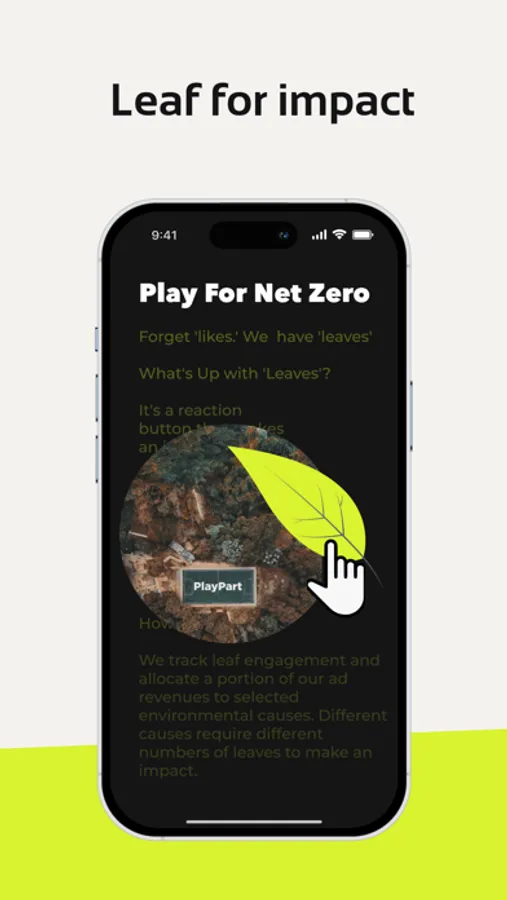 • PlayPart is more than a video-sharing app; it's a community where your engagement makes a real impact on the environment. Tap the "leaf" on videos to contribute and turn virtual engagement into real-world change.