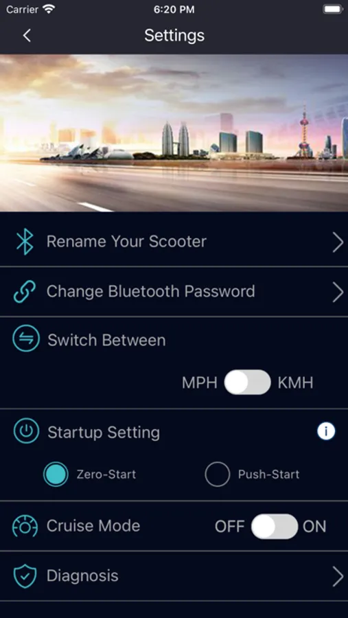 3. The App can also control the vehicle's speed mode, cruise mode, startup setting, etc..