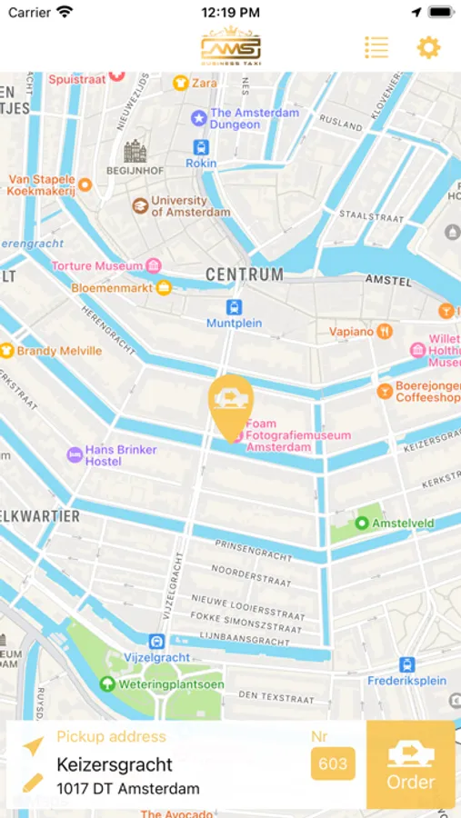 Hoe werkt het? U bestelt de taxi met de AMS Business Taxi (ABT) applicatie Uw locatie wordt automatisch door de applicatie bepaald U voert de gewenste bestemming in U kiest welke betaalwijze u wilt hanteren en boekt uw rit! U kunt nu in de applicatie de locatie van uw taxi zien, tevens ziet u de verwachte aankomsttijd van de chauffeur.