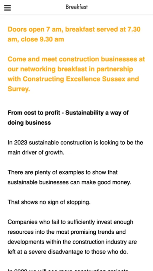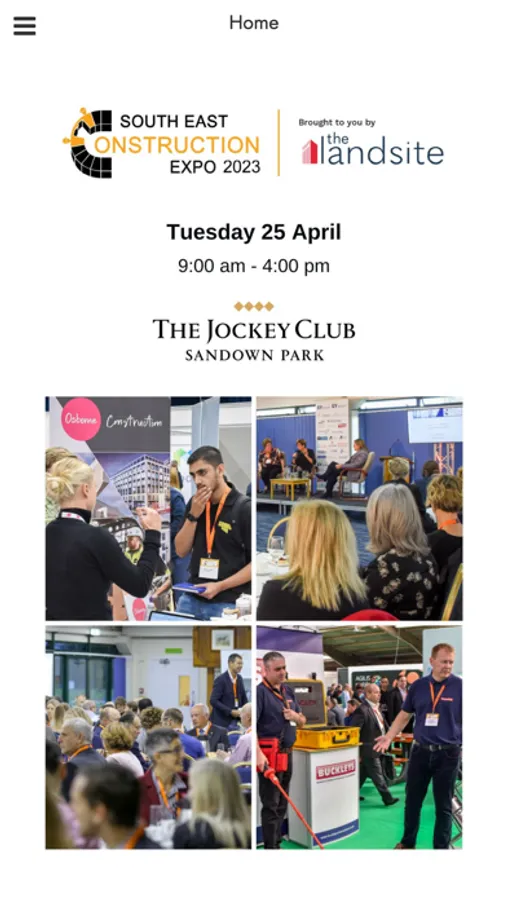 Best Business Events, Kent. Events Company. Download app for programme guide for South East Construction Expo on 25 April at Sandown Park Racecourse, Surrey.