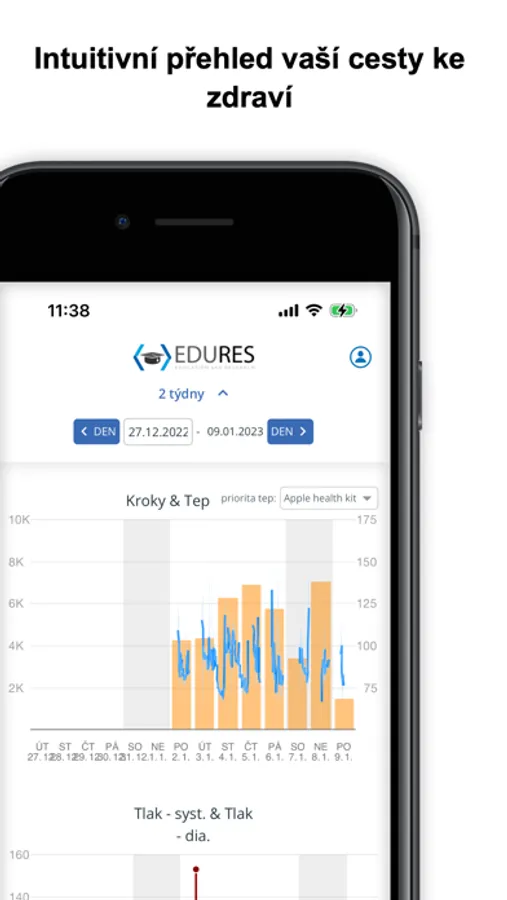 - díky kompatibilitě s Apple Health (Zdraví), lze používat libovolné měřící zařízení jako jsou např. Apple Watch