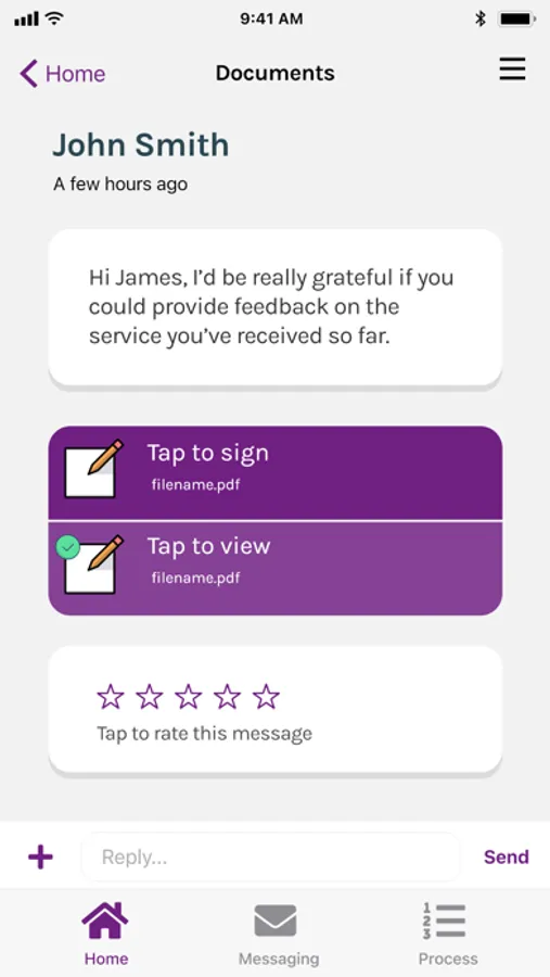 Communicate with your lawyer, 24 hours a day by sending messages whenever you like. Your lawyer can also send messages to you which will be kept neatly within the app, recording everything permanently.