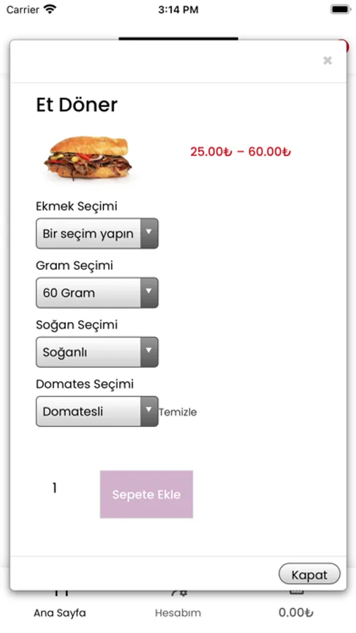 Dönerci Özkan paket sipariş uygulamamız ile siparişlerini kolaylıkla verebileceksiniz. Siparişleriniz tek tıkla kapınızda. Şu an sadece Denizli Merkez'e paket servis hizmetimiz vardır.