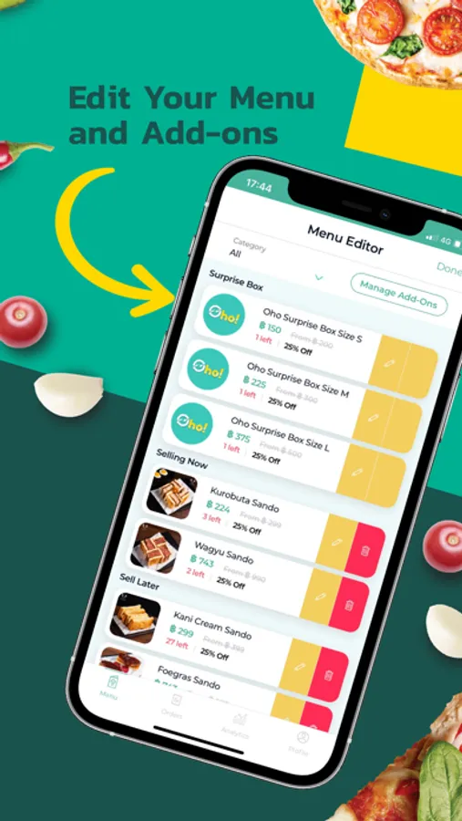 Upload surplus / promotional food to Oho! you can edit your menu and manage your inventory very easily