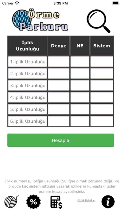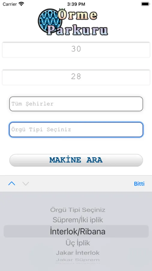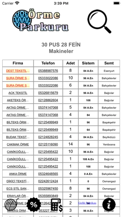 Fason örme işlemi yapan firmaların Yuvarlak örme makinesi bilgilerine ulaşmak için Pus ve Fein değerleri yazılarak arama butonuna tıklanır. Aranan özellikte makinesi olan firmalar ve sahip olduğu makine adetleri listelenir.