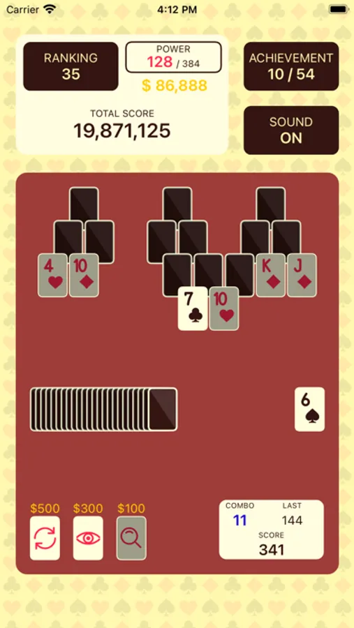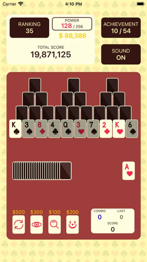 Solitaire game that requires good memory, skills and strategy to get high scores.