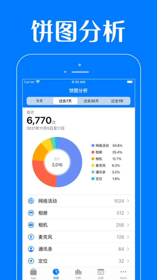 6、群组功能:一目了然的看到每天、每个App、每个类别的数据
