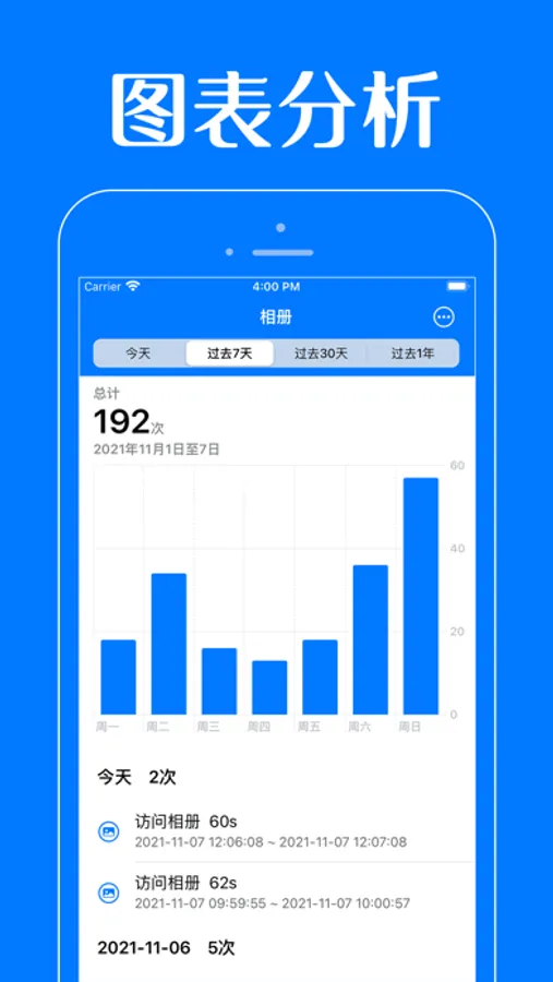 5、日期分析:今天、过去7天、过去30天、过去1年的数据分析
