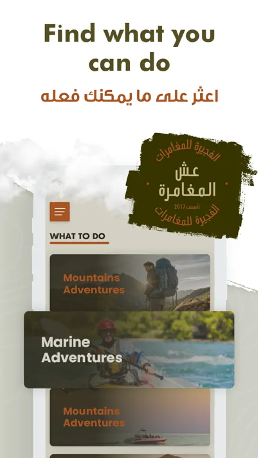 لـمارسـة أنشـطة الـغامـرات الـختلفة والـتي تـتضمن: الـغامـرات الـجبلية، البحـريـة، الـجويـة والصحـراويـة،