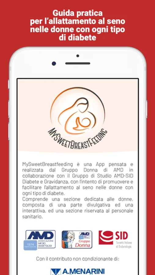 MySweetBreastFeeding è una App pensata e realizzata dal Gruppo Donna di AMD in collaborazione con il Gruppo di Studio AMD-SID Diabete e Gravidanza, con l'intento di promuovere e facilitare l'allattamento al seno nelle donne con ogni tipo di diabete. Comprende una sezione dedicata alle donne, composta di una parte divulgativa ed una interattiva, ed una sezione riservata al personale sanitario.