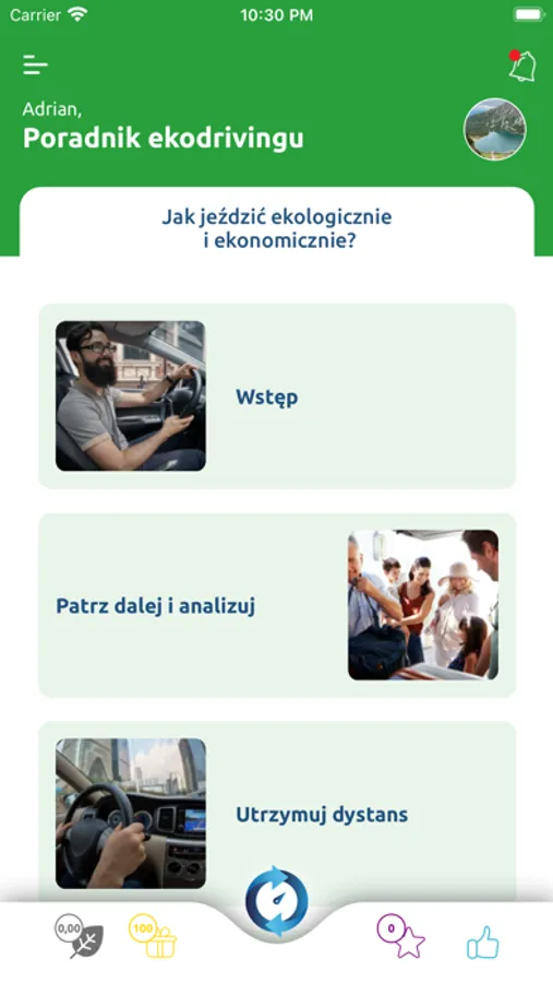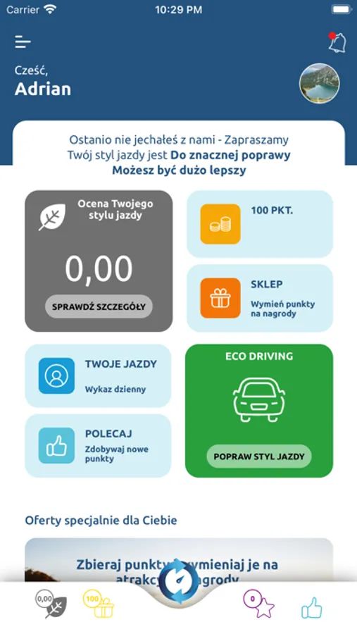 My oddajemy Ci do dyspozycji sprawny, zadbany samochód oraz narzędzia do wspólnej zabawy, której celem jest zmniejszenie emisji CO2 do atmosfery. Będziemy podpowiadać, w jakich aspektach stylu jazdy jeździsz bardzo dobrze i podpowiadać, co zmienić w pozostałych, żebyśmy osiągnęli wyznaczony cel. Jak będziesz osiągać sukcesy, na pewno nie zapomnimy, żeby to nagrodzić.