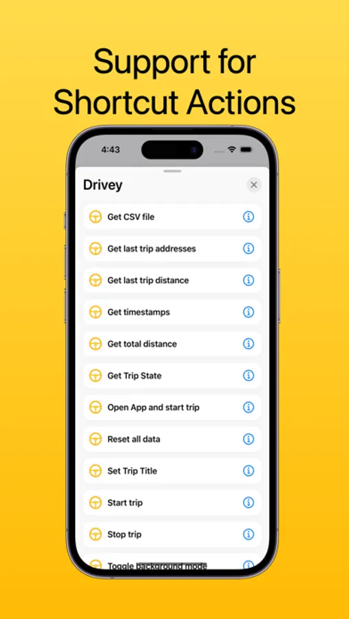 Drivey core technology is a simple, but accurate odometer. However, with the use of Siri Shortcuts, you can adapt Drivey to your use case and make it powerful, by including it in automations. With those, you can automatically start or end trips, get insights about your tips or generate a CSV file with all your trips to use it in your workflows.