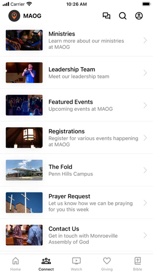 Welcome to the Monroeville Assembly of God App! With this app you can tune in to our live stream, watch or listen to past messages, stay up to date with push notifications, find out about upcoming events, contact us, and give.
