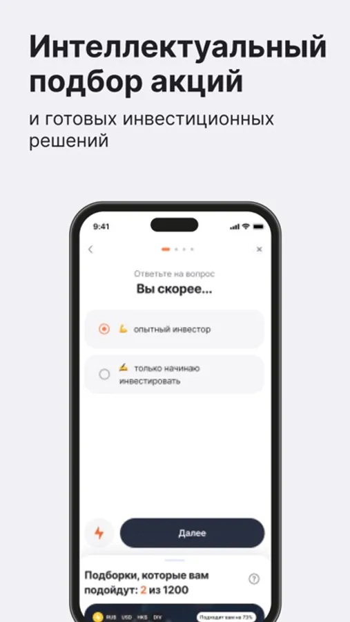 · Готовые подборки ценных бумаг и инвестпродуктов, настроенные исключительно под ваш финансовый вкус.