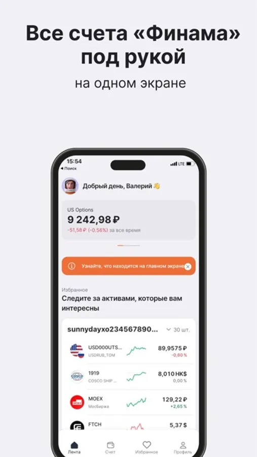 Finam Invest — все необходимое для осознанных инвестиций в одном приложении. Экономия времени на поиск подходящего продукта.