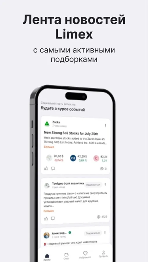 · Самая актуальная финансовая информация из интеллектуальной новостной ленты Limex. В приложение встроен новостной агрегатор с возможностью фильтрации по темам. Умная лента настраивается под ваши предпочтения, показывает выбранные вами материалы и то, что может быть вам интересно. 15000 авторов, 3000 комментариев и новостей каждый час.