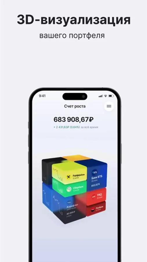 · Визуализация вашего портфеля в 3-D позволит наглядно увидеть соотношение активов в портфеле, а алгоритмы искусственного интеллекта подскажут прогноз по ним.