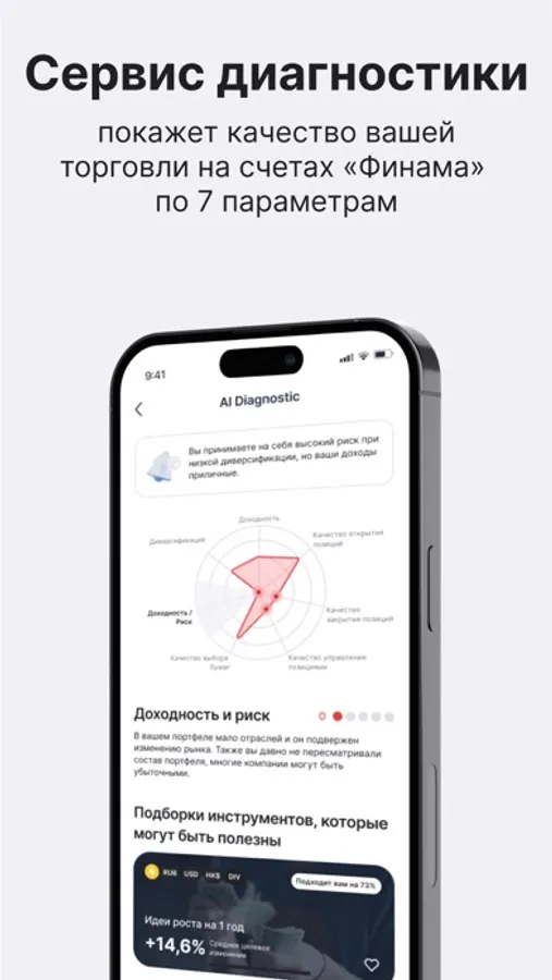 · Сервис Диагностика проведет анализ вашего портфеля по 7 параметрам, оценит качество вашей торговли.