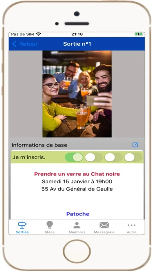 Pour élargir son cercle d'amis ou rencontrer de nouvelles têtes, rien de plus simple, il suffit de s'inscrire (c'est gratuit) et de proposer des sorties ou de s'inscrire aux sorties proposées.