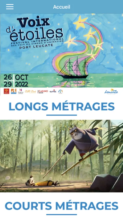 L’application Festival Voix d’étoiles vous permet de découvrir toute la programmation du festival international des Voix du Cinéma d’Animation de Leucate, dans l’Aude. Dernières news, jurys, palmarès, longs métrages, courts métrages, séries, films de fin d’études, ateliers, expositions… Retrouvez tout Voix d’étoiles au creux de votre main !