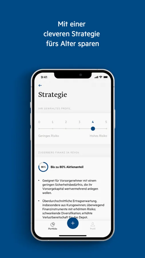 Bei der App handelt es sich um keine Trading-Plattform. Ihr (Vorsorge-) Vermögen wird durch die Zugerberg Finanz aktiv verwaltet. Aktuell werden die 3a Revo, Freizügigkeits- und Revo-Mandate der Zugerberg Finanz Kunden innerhalb der App abgebildet. Die R-Mandate werden in einem nächsten Schritt in der Zugerberg Finanz App aufgeschaltet.