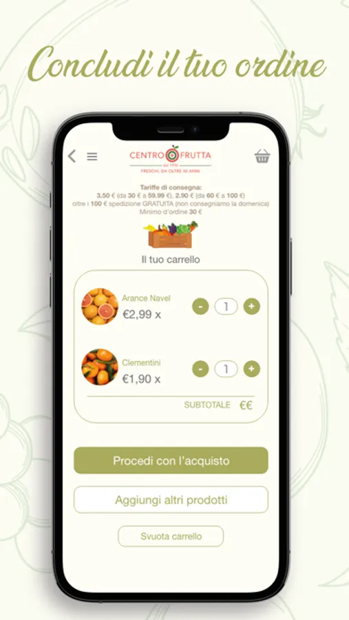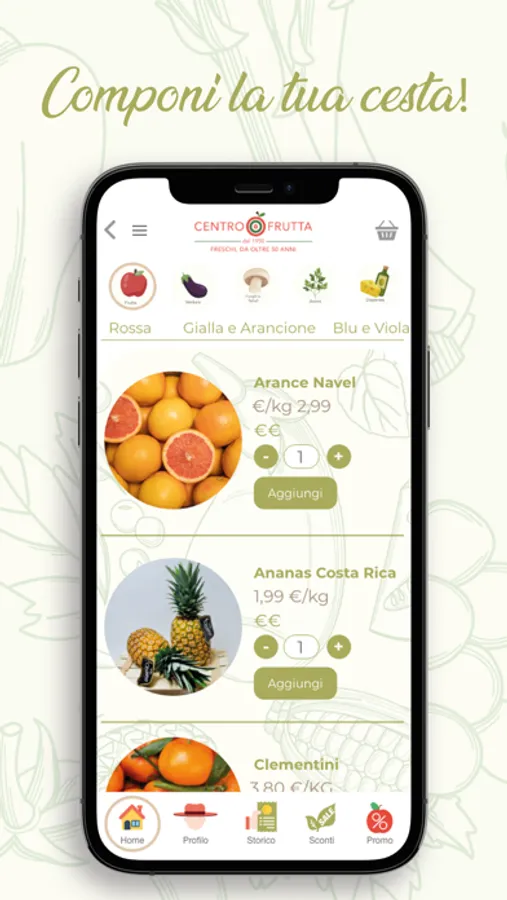 L’uso dell’app di CentroFrutta richiede la registrazione gratuita. i servizi richiedono una connessione a internet e non sono disponibili in tutti i paesi e in tutte le lingue. Per saperne di più sulle consegna di CentroFrutta vista il nostro sito web www.centrofruttamilano.it e leggi il regolamento dell’app.