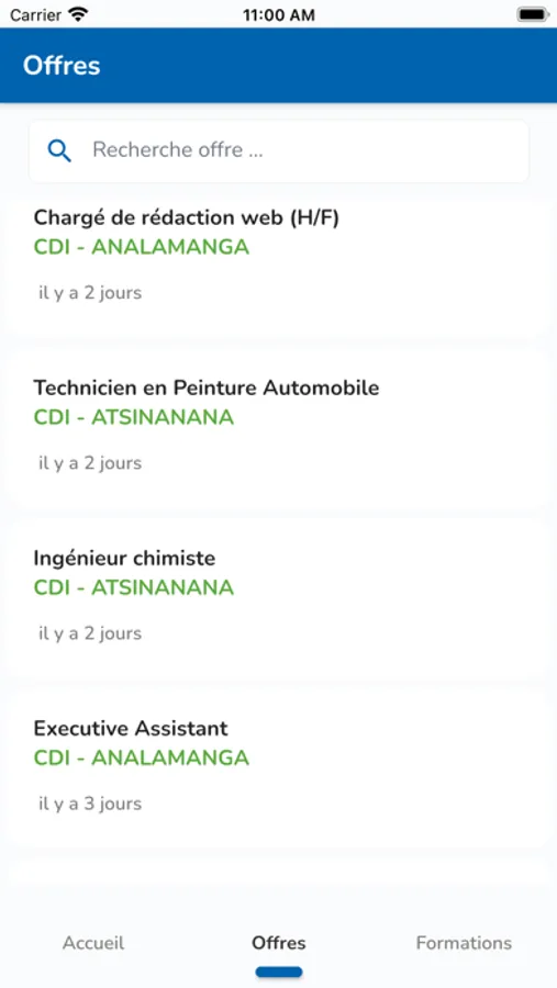 En un seul clic, JobMADA vous donne accès à un large choix d'offres à travers Madagascar, que ce soit des offres en intérim, en CDD ou en CDI. Nous vous accompagnons tout au long de votre recherche.