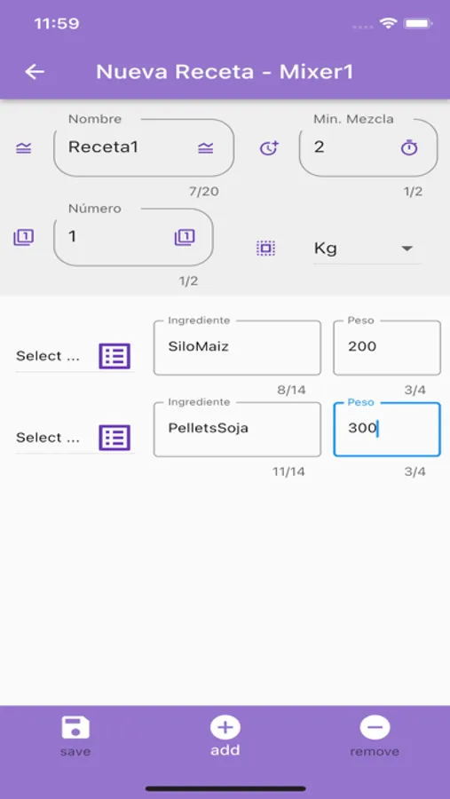 La aplicación permite, realizar recetas de carga y guías de descarga para trabajar con mixer de alimentación ganadera. Ademas una guía completa en el uso del indicador a medida que se van cargando los ingredientes de la receta, o se va descargando el alimento en los lotes designados.