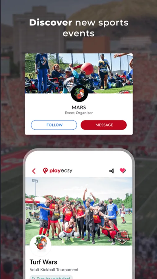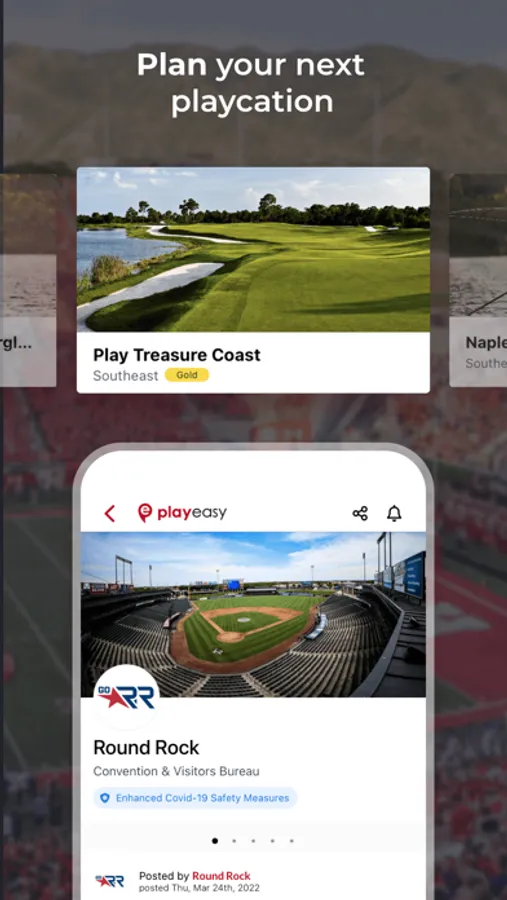 Discover 450+ Destinations, 500+ Sporting Event Organizers, 2,000+ Events, and 15,000+ Venues with the Playeasy app. Filter and search interactive marketplaces on the largest online network of sports Destinations, Event Organizers, athletic Venues, and Events in the US. Get all details you need in one place to register for events, buy tickets, book hotels, and contact event hosts. Follow profiles that interest you, and like and share events you'd like to participate in, watch, or host. This is for you to discover new places and message new connections right from your pocket. We make it easy to play – it's in our name.