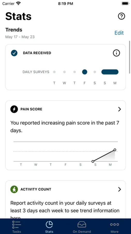 You can view your trends based on the information entered and seamlessly share it with your Boston Scientific care team. You also have the option to share the data with your doctor. The mySCS SmartCare app is designed to bring more clarity to your pain management progress.