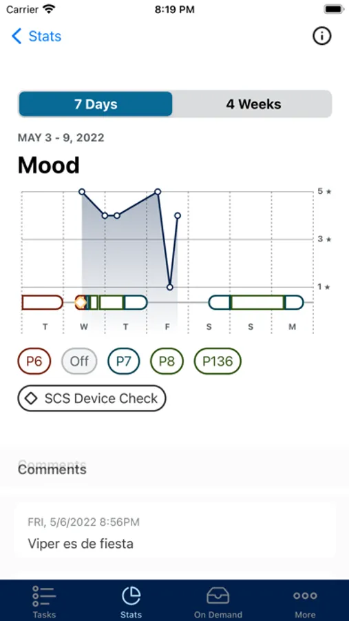 The mySCS™ SmartCare app helps you monitor your SCS treatment by allowing you to easily track and share important information about your pain management progress over time.