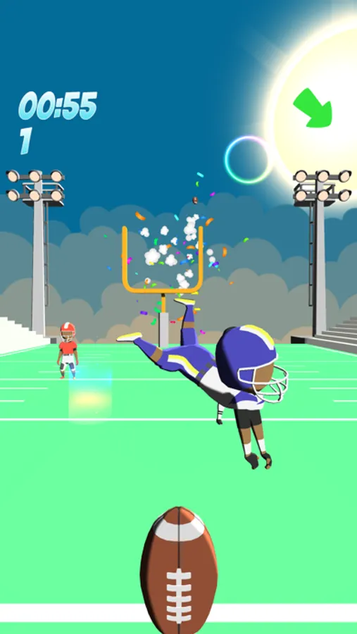 Fun and addicting Football field goal casual kicking! Try to aim with the challenges of the winds direction! Make sure to watch out for the blockers!
