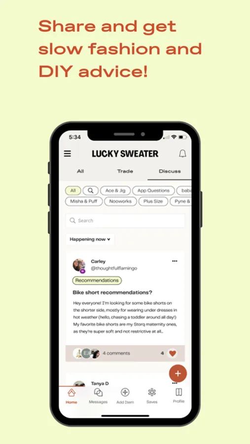 Each community has its own discussion space. New to slow fashion and want brand advice? Have a question about the fit of overalls you’re eyeing? Want to learn a new knitting technique? Head to the discussion space to learn and hang out with your communities.