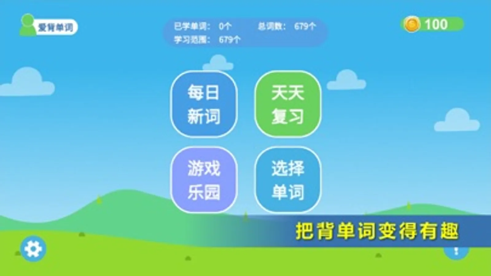 您可以每天学习新单词,通过测试以后赚取金币,然后用金币去玩各个英语游戏。想要玩得更多,就必须学得更多,以此来激发您的学习动力。