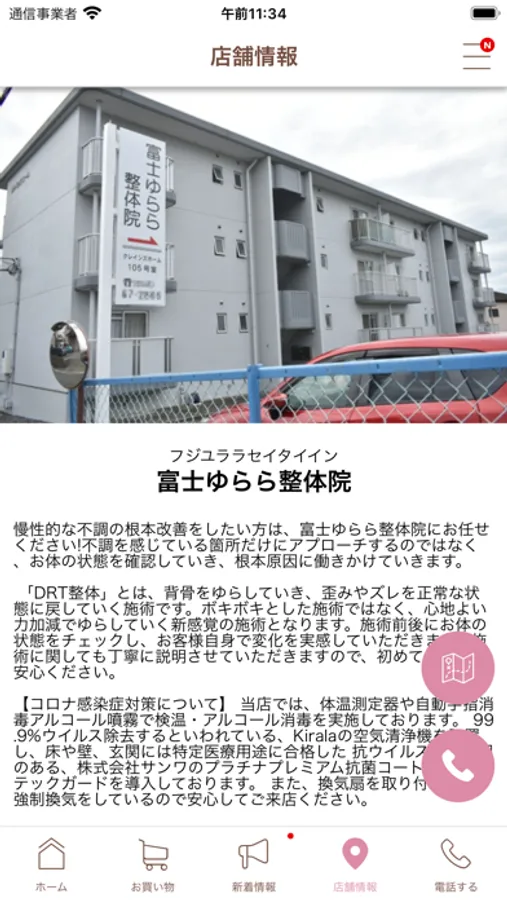 店舗のマップが表示され、地図アプリとも連携しているので、初めてのご来店の時も簡単に見つけることができます。
