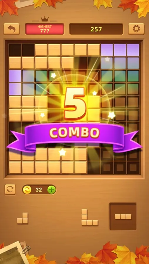 You need to use some tactics to drag and drop the Tetris-like block onto the board. If there or more lines of blocks are eliminated at a time, you will see a stunning screen vibration effect! Every move you make is a good training for your brain. There is no time limit for the wood block puzzle game, you can think twice before starting to move. The more moves you make, the higher score you get. Download this classic Wood Block Puzzle game now to improve your logic skills and refresh your mind!