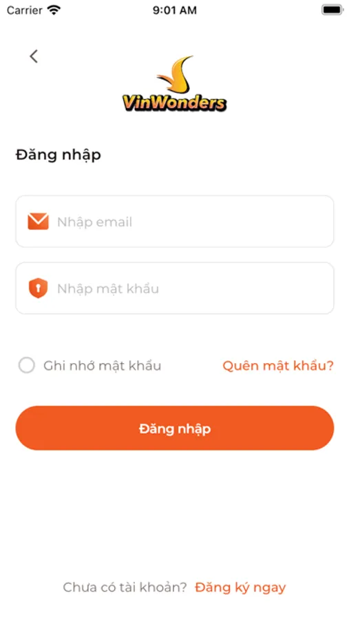 + Người dùng có thể đăng ký thành viên thông qua email để nhận các khuyến mại từ VinWonders.